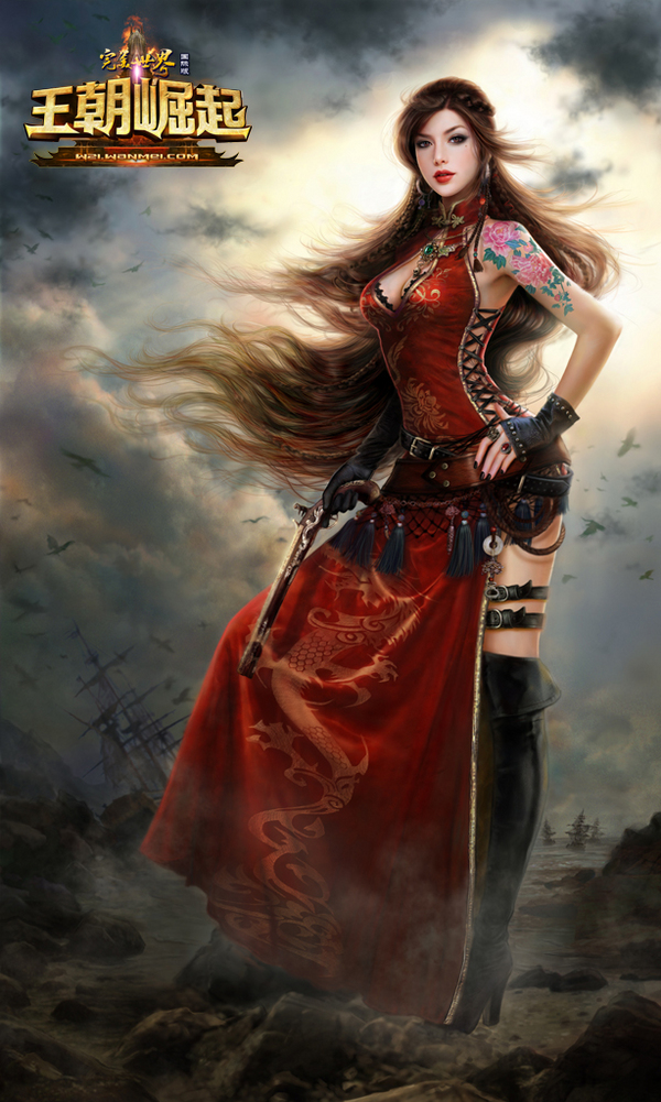 东方的青帝之都建于龙骨巨船之上,千年来横行于海,它的主人冷月是一位绝代佳人。随意披散的长发下,一袭殷红旗袍尽收眼底,肩上的牡丹纹身,与旗袍相得益彰,倾国倾城的容颜让无数男子为之倾倒。青帝冷月是响当当的御姐,身为海盗头领,不仅拥有东方佳人的柔媚,还拥有王者的傲骨和冷艳,航行没有尽头,杀戮即是狂欢,你有勇气踏上她的龙船吗?